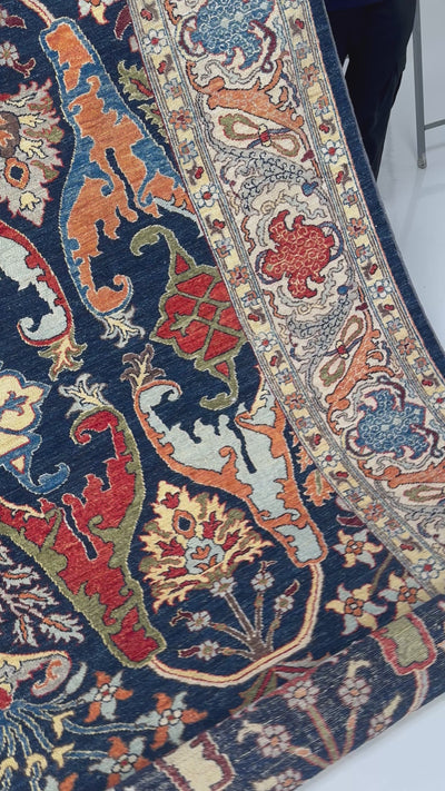 Midnight Relic carries a depth and intensity that feels ceremonial and enduring. Entirely handwoven by master artisans, this carpet is crafted from 100% natural wool sourced from Pakistan and New Zealand, valued for its robustness, natural warmth, and richly textured surface.