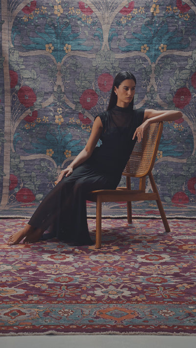 Plum Mosaic is a joyful yet composed celebration of pattern, colour, and human touch. Entirely handmade by experienced artisans, this carpet is woven using 100% natural wool sourced from Pakistan and New Zealand, selected for its tactile richness, strength, and ability to hold complex colour with clarity.